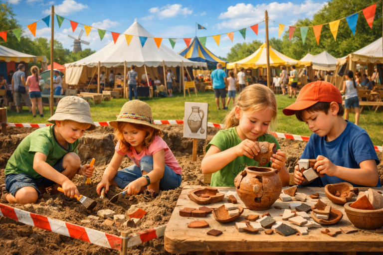 Maar daar stopt het niet! Met de gevonden scherven gaan de jonge onderzoekers puzzelen en bouwen. Lukt het om de stukken weer samen te voegen tot één geheel? Zo ontdekken ze hoe archeologen het verleden stukje voor stukje reconstrueren. Een speelse én leerzame activiteit voor nieuwsgierige speurneuzen en kleine ontdekkers. Kom langs en graaf mee in het verleden!